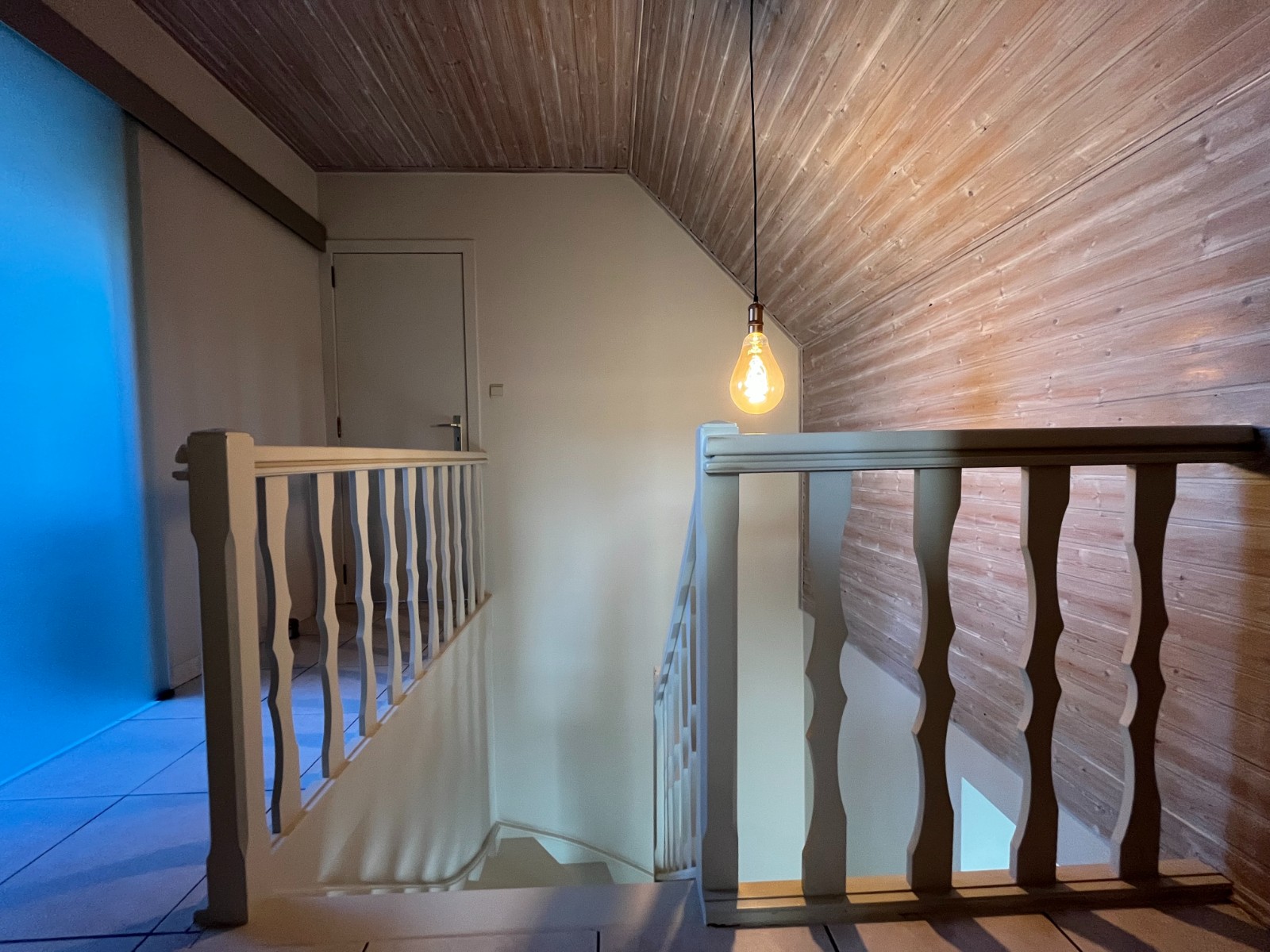 Je betreedt de woning via de inkomhal, waar zich rechts een apart gastentoilet bevindt en de trap naar de eerste verdieping. Vanuit de hal kom je in de lichtrijke woonkamer, die naadloos overgaat in de eetkamer. Via een schuifraam heb je directe toegang tot het zonnige terras en de tuin, wat zorgt voor een mooie verbinding tussen binnen en buiten.